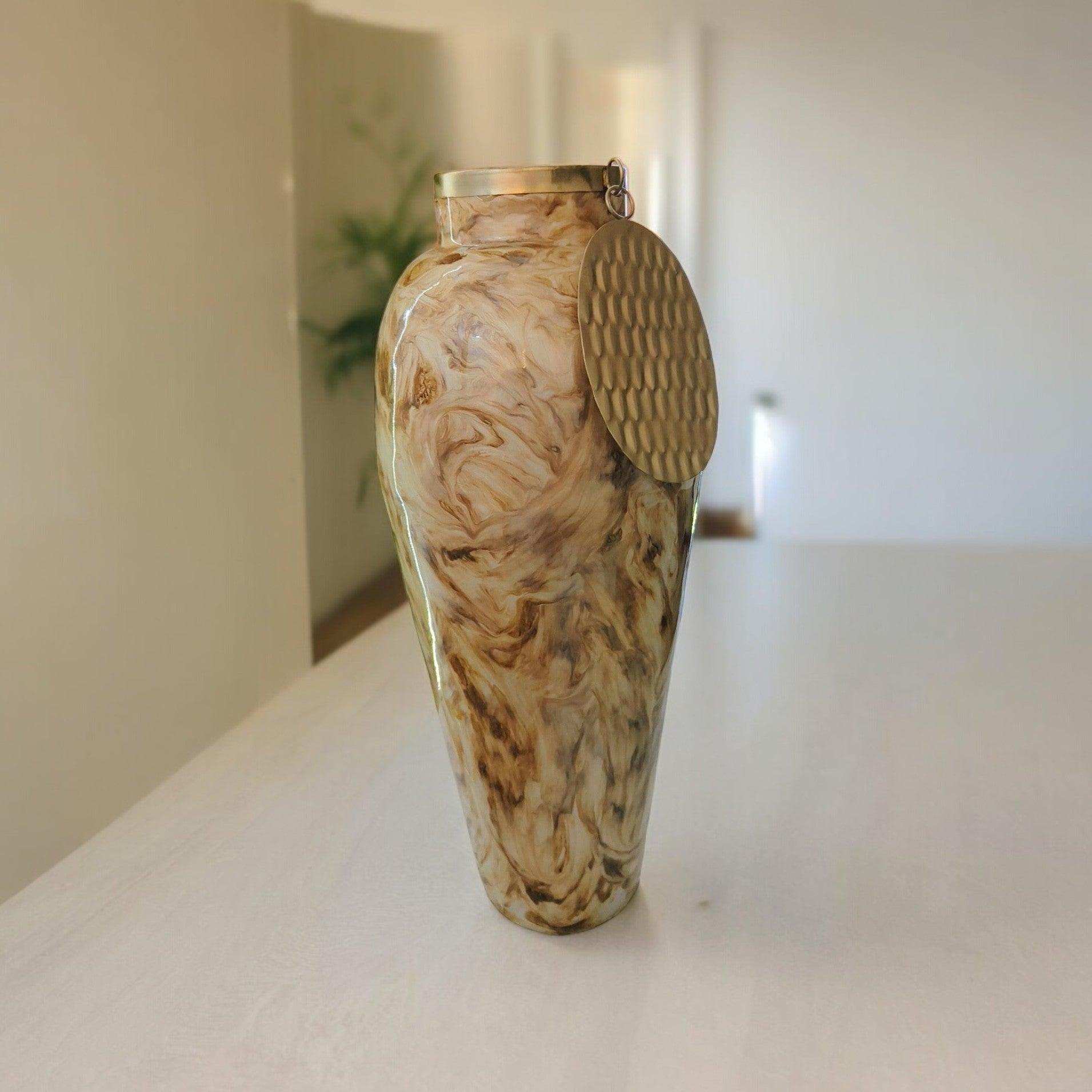 - Elegant Design: The vase boasts a refined cream color, complemented by graceful swirl patterns that add a touch of artistic flair. Its sleek and slender profile enhances its sophisticated appearance.